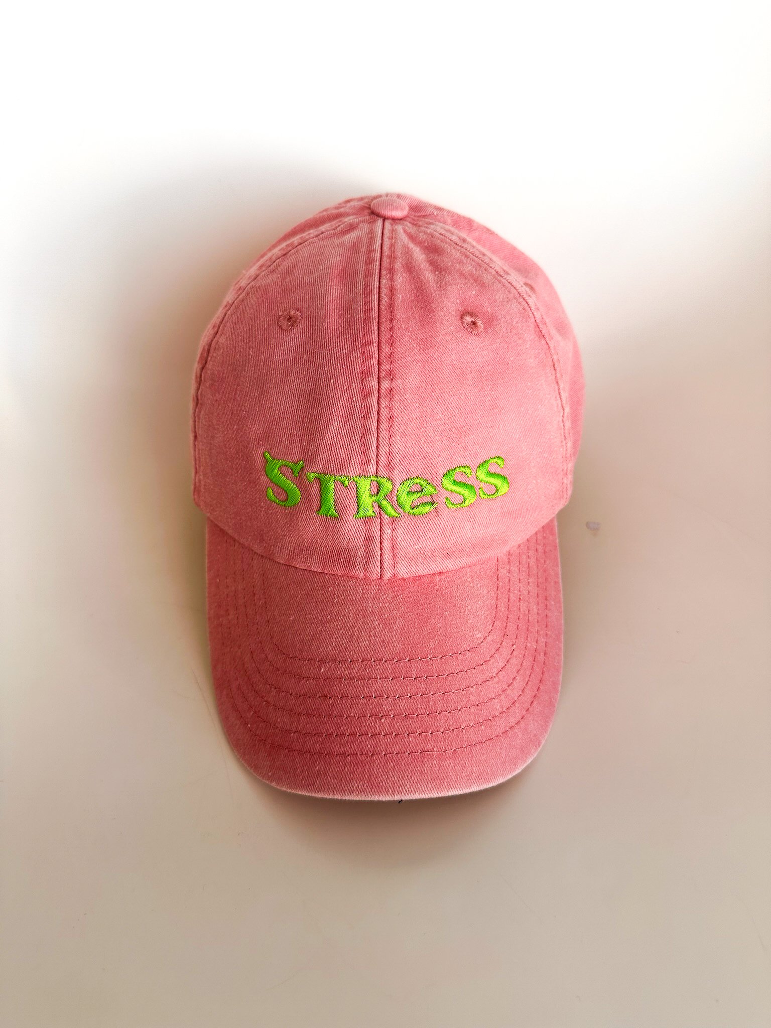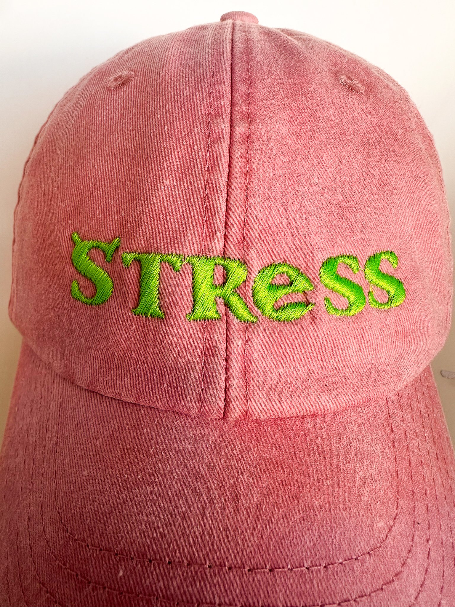 Bordado: verde ácido, como tu paciencia cuando se evapora.